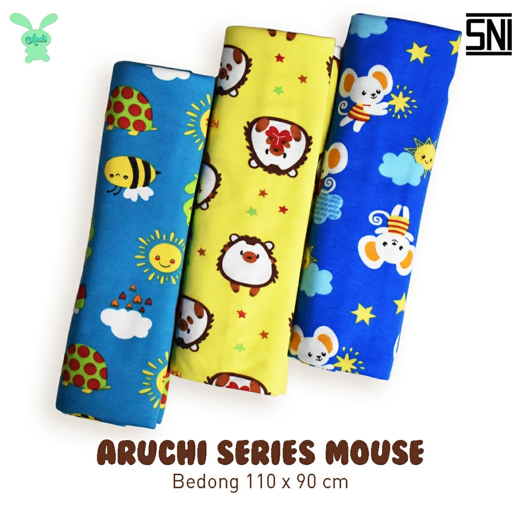 Alasan kenapa harus beli Aruchi bedong size 85 x 112 cm. 1pak isi 3pcs, harga 1pak. Geser foto untuk lihat motif sekarang