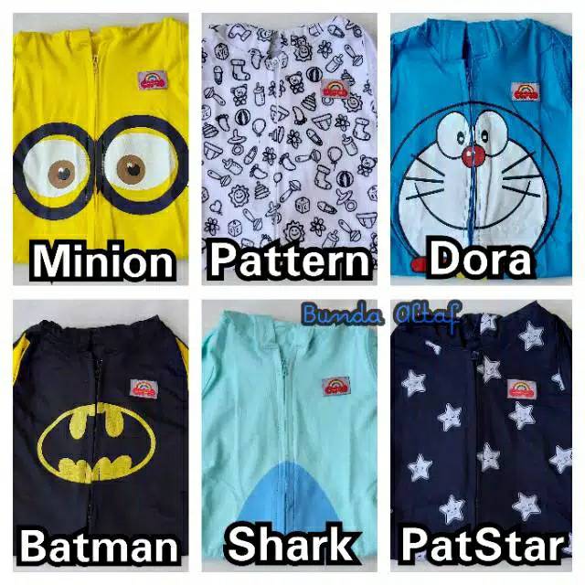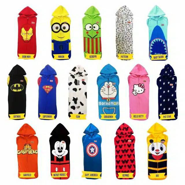 Produk ini memiliki 14 Variasi Motif yaitu : Capt America,Mickey mouse,Keropi,Doraemon,Hello kitty,Superman,Kepmos,Ironman,Bee,Batman,Minion,Patstar,Pattern,Garfield,