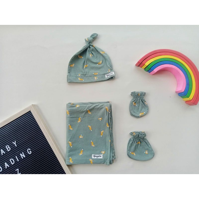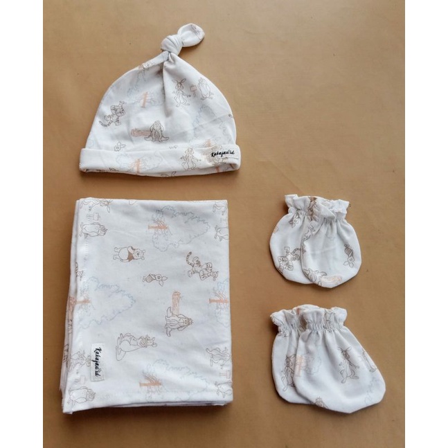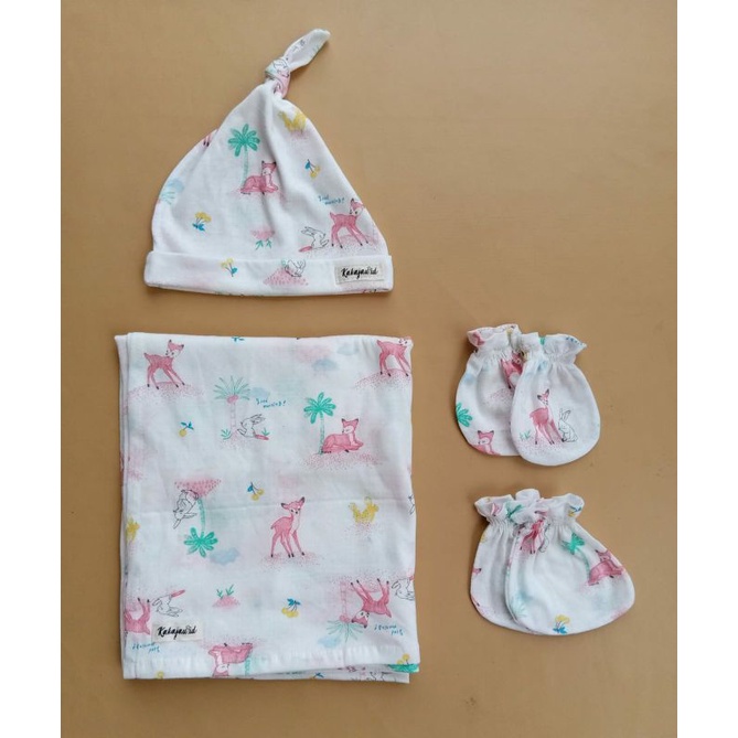 Harga BEDONG/SWADDLE SET WITH KNOT HAT, MITTEN AND BOOTIES