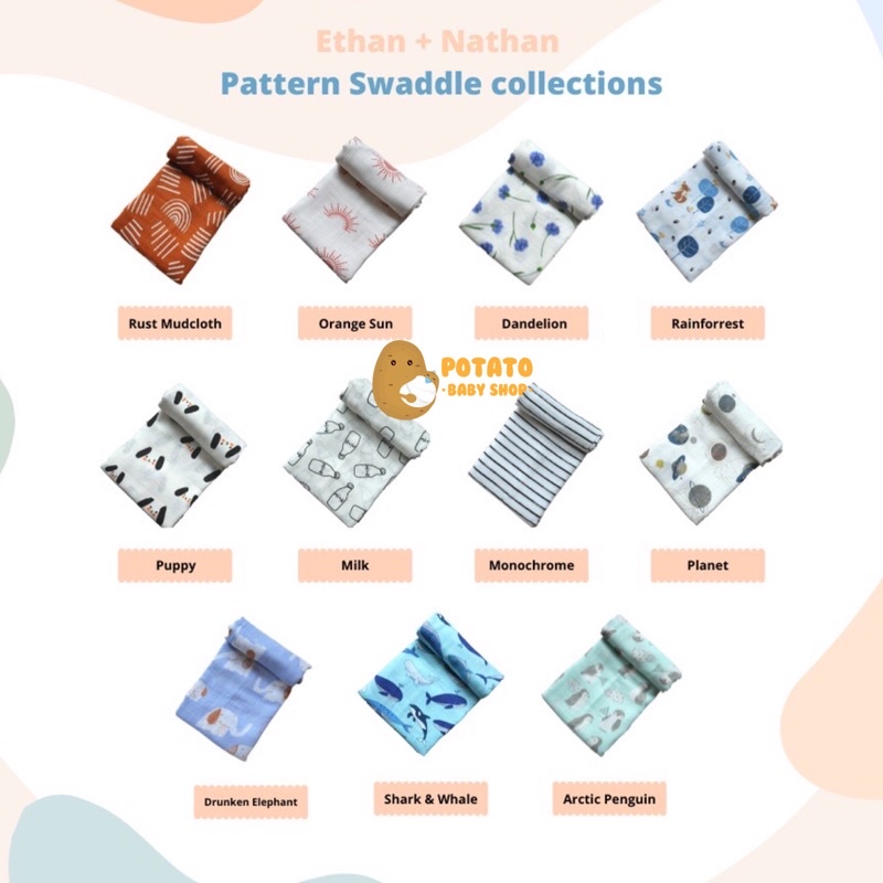 Alasan kenapa harus beli Ethan & Nathan - Pattern Baby Swaddle Signature ( Bedong Muslin ) sekarang