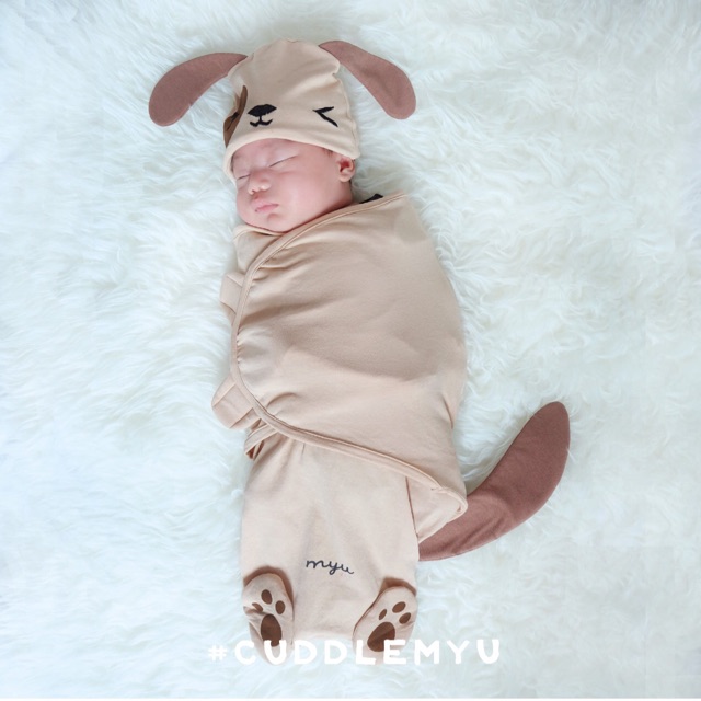 Alasan kenapa harus beli HELLO MYU Puppy Wrap (bedong instan / swaddle bayi lucu / topi binatang) sekarang